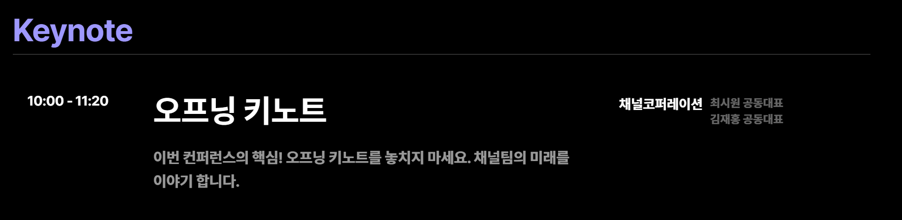 이후에는 컨퍼런스를 빛나게 해줄 연사진들의 라인업을 확인할 수 있었습니다.
