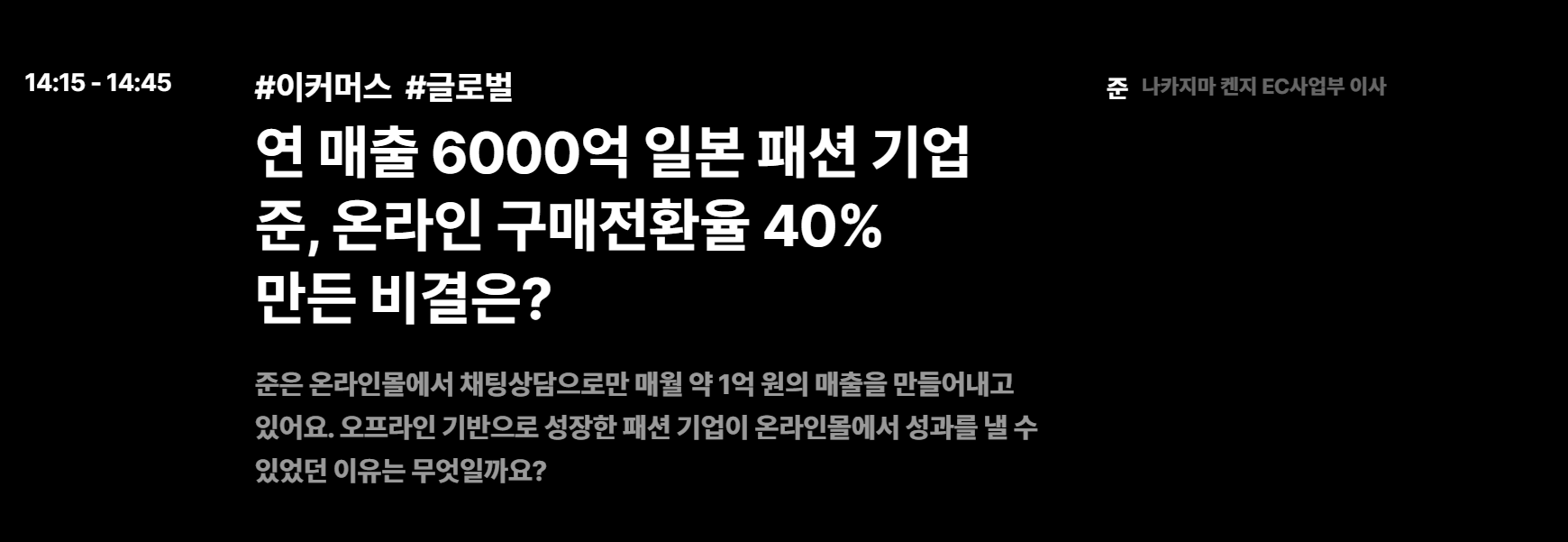연 매출 6,000억 패션 기업 준 이사님의 발표에서 그 내용을 확인할 수 있었습니다.